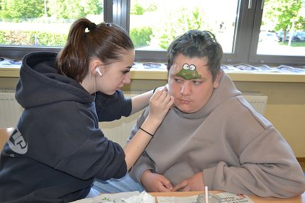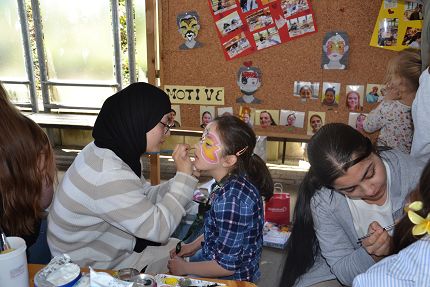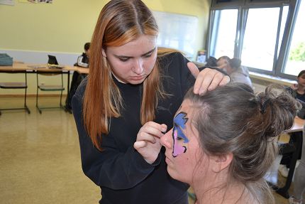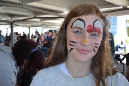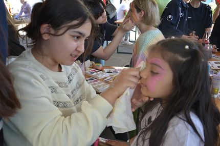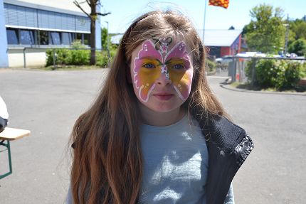 Am darauffolgenden Samstag startete das Schulfest, an dem die vorausgegangenen dreitägigen Projekttage präsentiert wurden. Viele Eltern, aber auch viele Ehemalige feierten den Geburtstag bei sonnigem Wetter mit der Schulgemeinschaft. Auf dem Schulhof wurde vom Projekt Bunte Schule ein Kinderschminken angeboten, wo besonders großer Andrang herrschte.